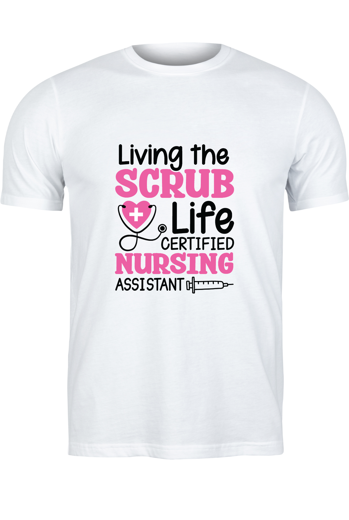Unleash a new level of fun to your professional wardrobe with this CNA "Living the Scrub Life" T-shirt! This vibrant graphic tee is guaranteed to brighten up your day and capture the attention of those around you, making it the perfect icebreaker with colleagues and patients alike. Elevate your work attire and conquer each day with unbeatable style and comfort!