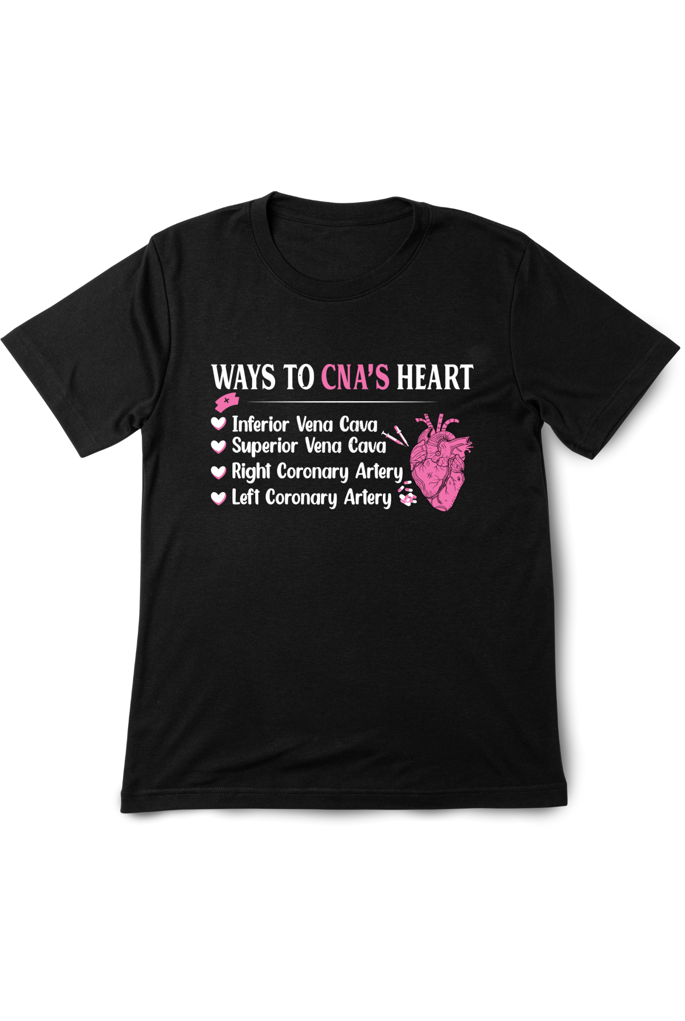 Celebrate the unique and caring spirit of Certified Nursing Assistants with our “Ways to a CNA’s Heart” T-Shirt. Featuring a playful and heartfelt design that lists the ways to a CNA’s heart—compassion, gratitude, respect, and a smile from a resident—this shirt is a perfect tribute to the love and dedication CNAs bring to their work every day. Made from soft, high-quality cotton, it ensures comfort during your busiest shifts and relaxed days off. Show your CNA pride and the values that drive your compassionate care. Available in a range of sizes and colors.