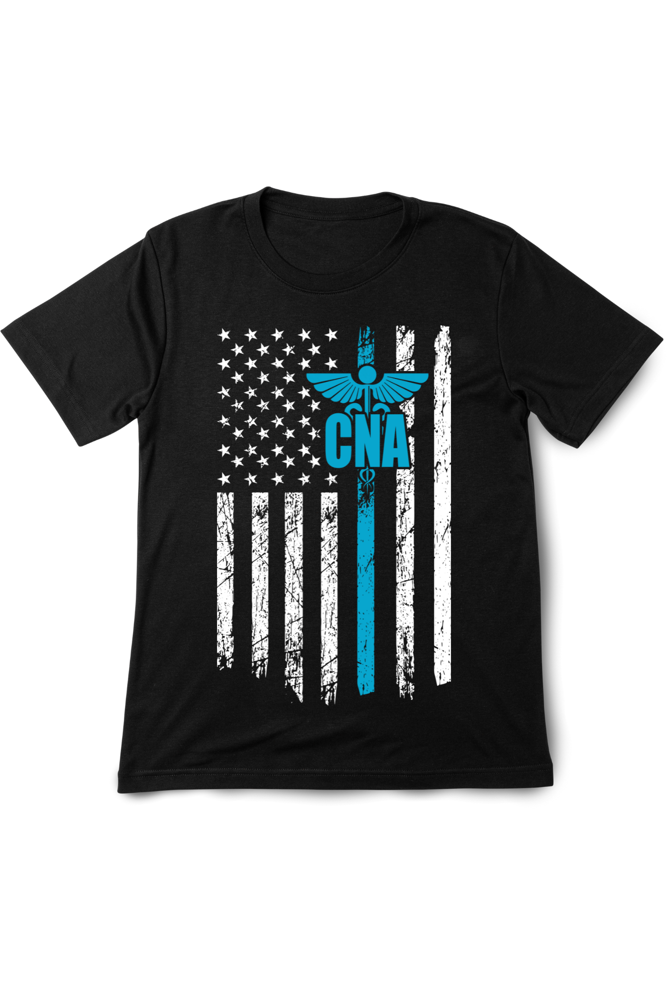Proudly showcase your dedication as a Certified Nursing Assistant with our “Distressed CNA American Flag” T-Shirt. This bold design features a distressed American flag with the CNA emblem seamlessly integrated, symbolizing your commitment and hard work. Crafted from high-quality, breathable cotton, this t-shirt ensures comfort during long shifts and off-duty hours. It’s a perfect blend of patriotism and professional pride, making it an ideal addition to your wardrobe. Available in various sizes and colors, this t-shirt is a must-have for any CNA who stands strong and serves with honor.