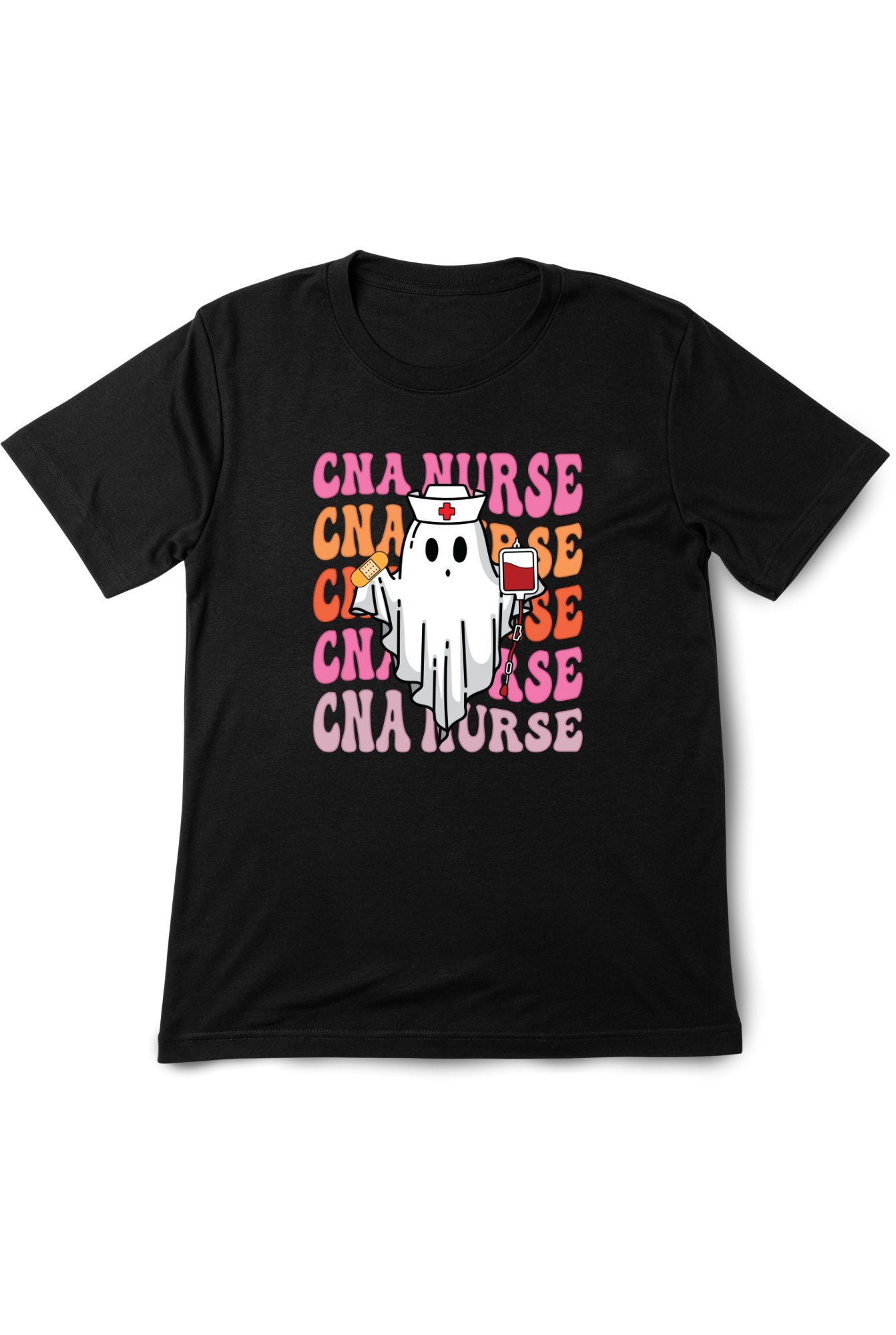 Embrace the spooky season with our “Ghostly CNA” Graphic T-Shirt! Featuring an adorable ghost sporting a stethoscope and CNA badge, this playful design adds a fun twist to your work wardrobe. Crafted from high-quality, soft cotton, this t-shirt ensures comfort and durability for long shifts and casual outings. Perfect for Halloween or any time you want to showcase your CNA pride with a hint of spooky charm. Available in various sizes and colors, this tee is a must-have for every Certified Nursing Assistant who loves a touch of ghostly fun!